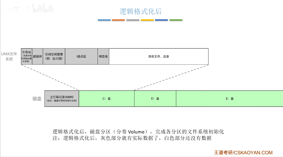 逻辑格式化:磁盘分区,完成各分区的文件系统初始化